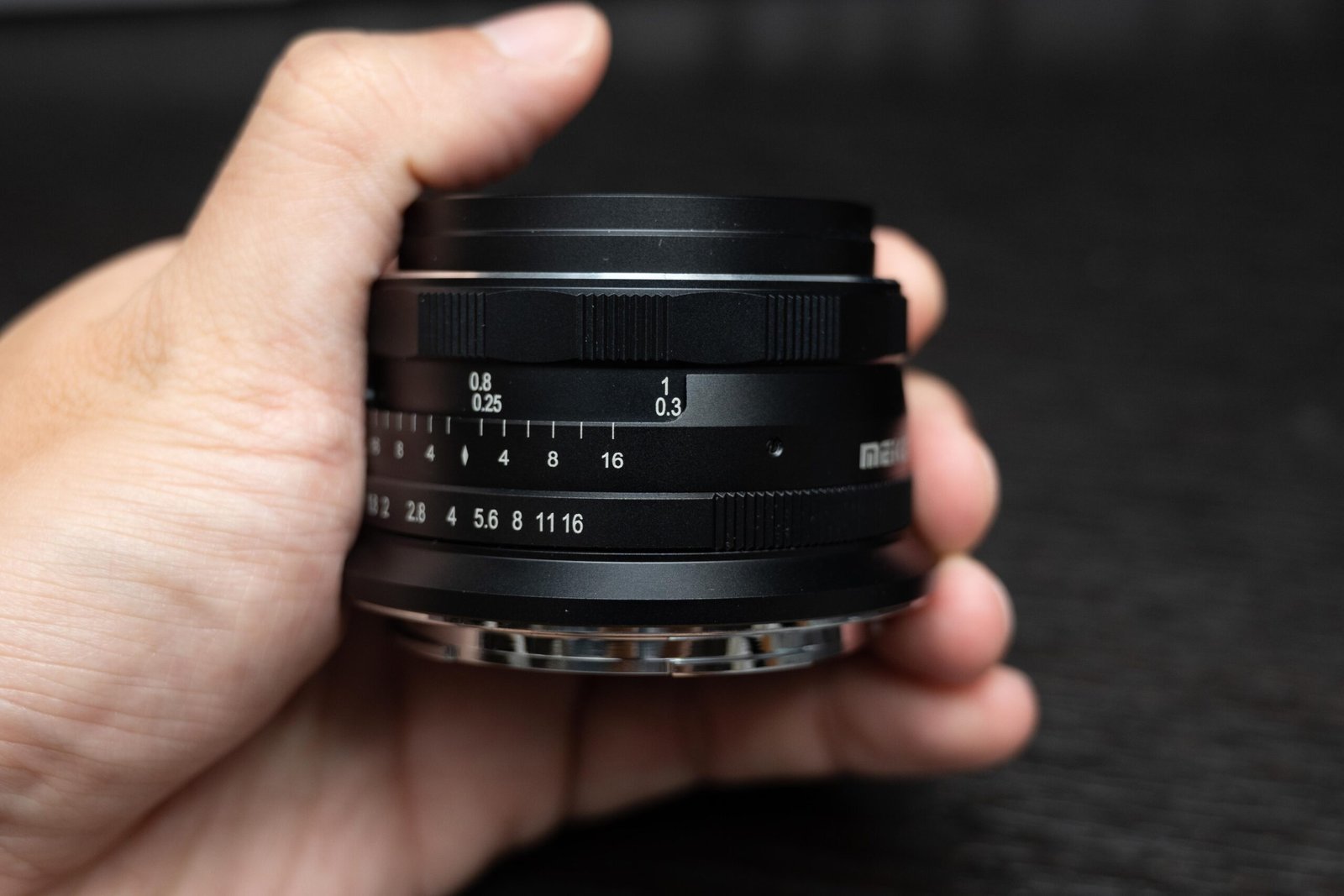 The lens has 2 control rings. The larger one near the front is for focus, while the rear knurled ring is a control ring that you can customise to adjust a few settings.