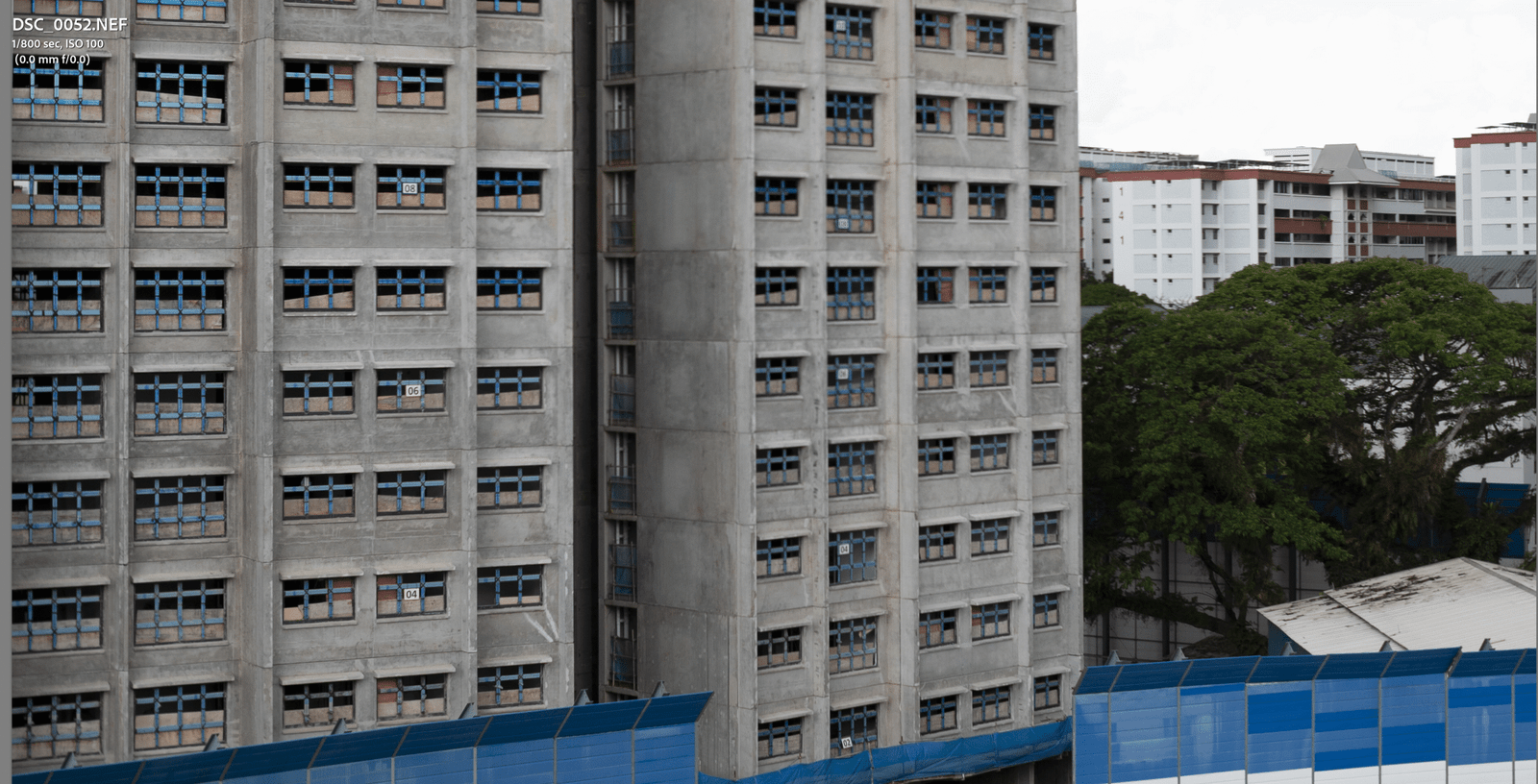 Chromatic aberration to me usually is not a huge issue since it can be fixed in lightroom. Wide open, you will see purple fringing on the white edges of the rooftop on the right.