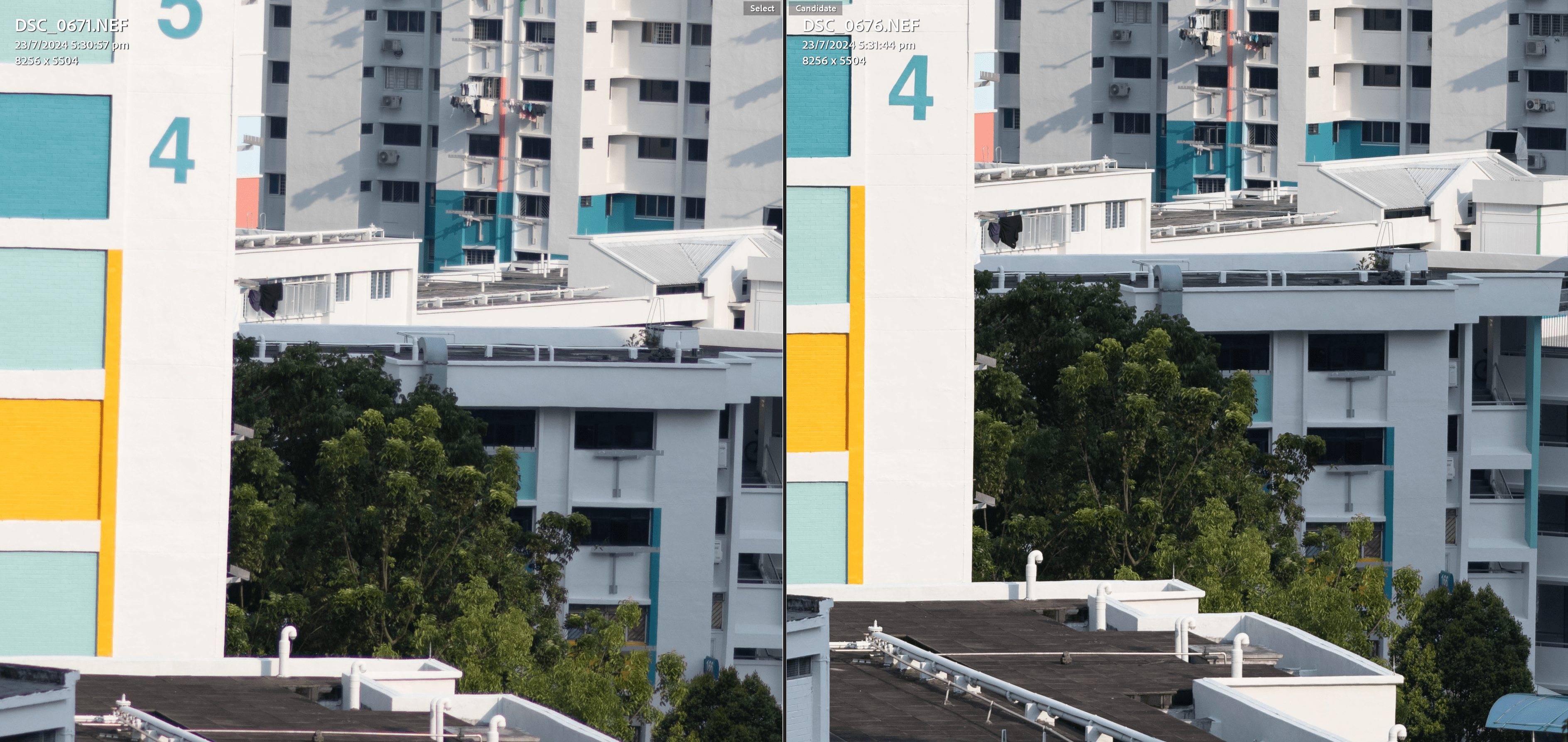 The screenshots are from lightroom at 100% zoom.